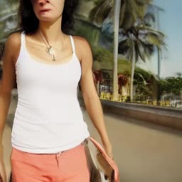 Uma linda mulher de seios fartos caminhando na beira do rio semi nua
