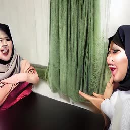 Seorang wanita jilbab berdada bear membuka baju
